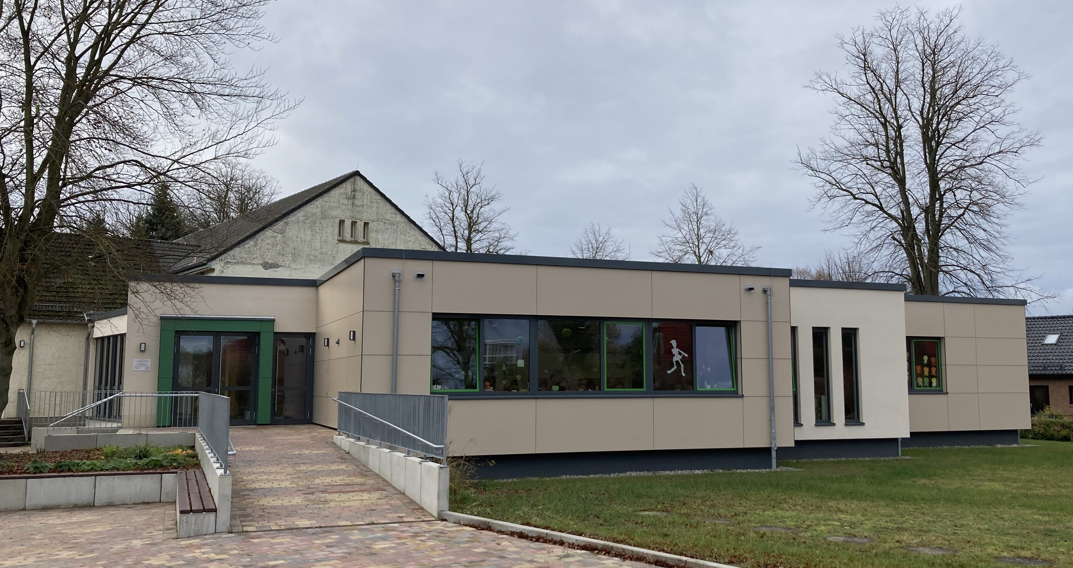 Wir freuen uns jeden Tag über unseren neuen Anbau, in dem Kinder zeitgemäß lernen können.